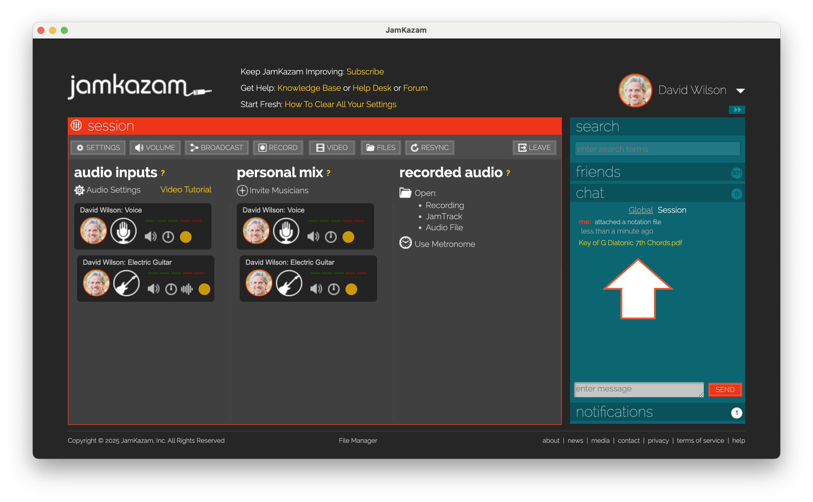 JamKazam uses the Opus codec, which is the industry's best audio processing technology for delivering studio-quality audio, balanced with ultra-low latency (critical for playing together, more on this later). When you get into your first JamKazam session, you'll be delighted by how amazing the audio sounds. It really is like being in a recording studio together.